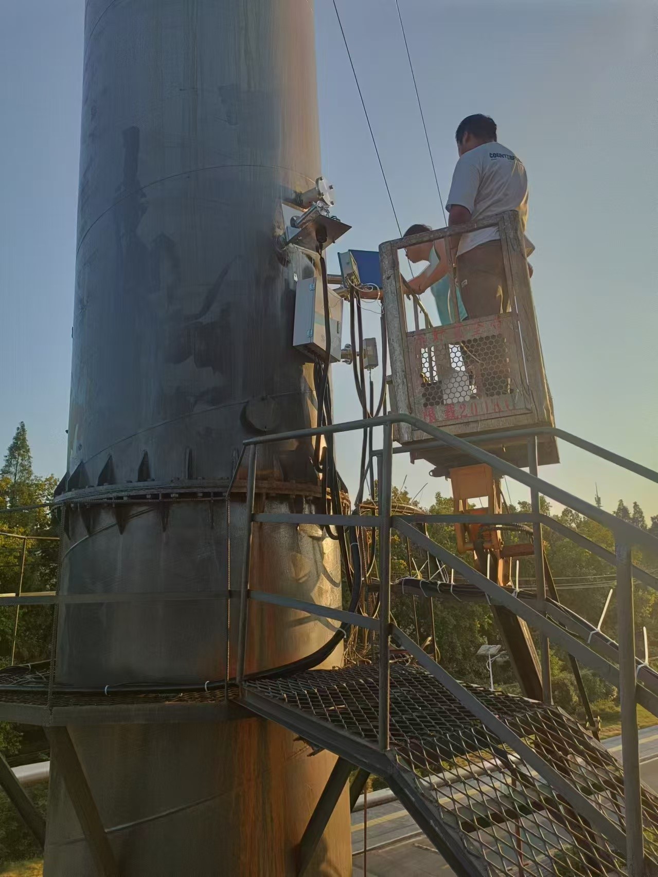 2024年9月在客戶湖南××公司煙氣在線監測平臺建設未完成情況下,要求我司加急安裝在線監測系統,盡快恢復在線數據的正常上傳。我司根據客戶要求會同施工方戰高溫、斗酷暑、搶工期急客戶之所急,利用升降機先將在線設備配套法蘭進行焊接,隨后再利用升降機對采樣探頭、顆粒物采樣探頭、濕度儀和溫壓流采樣探頭和伴熱管及線路的安裝,最終如期圓滿完成客戶要求。